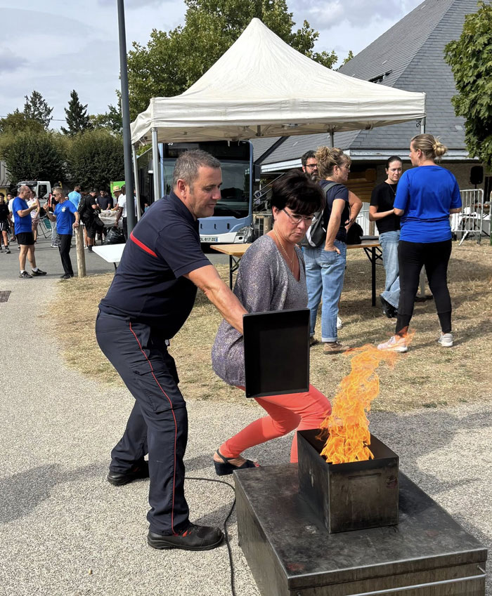 Avec madame la sous-préfète, accompagnées du Sapeurs-pompiers de la Vienne nous avons également participé à une démonstration sur la manière d’éteindre un feu de cuisinière.